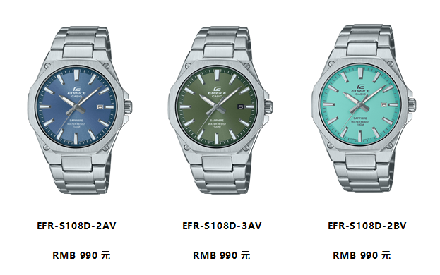 简约的特质让EFR-S108系列轻松驾驭商务与休闲场景,成为男士型格之路上的得力伙伴。此次,全新系列还推出了三种不同的配色,每种配色都呈现出不同的个性,营造出令人印象深刻的视觉张力。