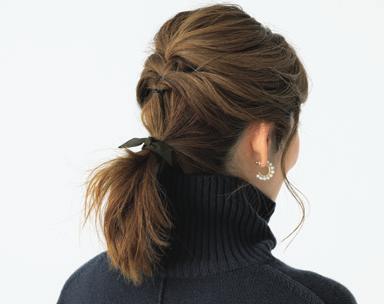 将所有头发用卷发棒卷一下然后编起来,这样就能营造出柔和的印象。因为下方的发量是有很多,所以需要把下面的头发束起来。