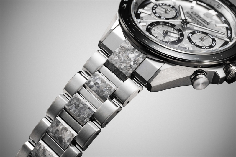 最能体现月色清辉的是表带中央链节处的再结晶舒博™钛——通过精准控制的高温热处理与渐进冷却工艺,让钛金属内部自然形成如霜雪般纯净、如冰晶般剔透的独特纹理。因制作工艺导致每次的晶体图案皆独一无二,有的像月光照射下天然矿物的层叠肌理,有的则似月光落在湖面泛起的细碎波光,赋予每只腕表鲜活的生命力。