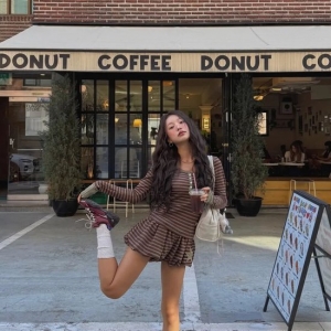 最近热巴参加活动时,一身“元气学姐”的造型登上热搜,白色Polo衫搭配百褶裙,明媚又清新。