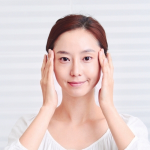 法令纹用手掌较为厚实的地方,从颧骨下方开始轻轻向上推压,就像是在提拉脸部一样。然后